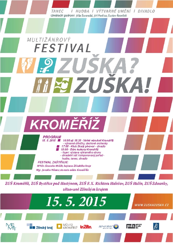 Vystoupí žáci všech oborů ze základních uměleckých škol okresu Kroměříž zřizované Zlínským krajem - ZUŠ Bystřice pod Hostýnem, ZUŠ Holešov, ZUŠ Hulín, ZUŠ Kroměříž a ZUŠ Zdounky. Při příznivém počasí na Velkém náměstí.
