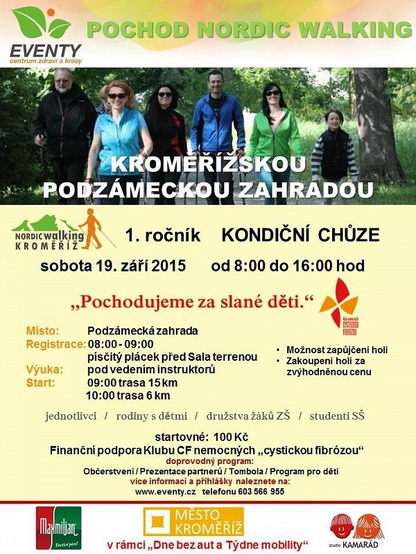 Sportovní akce jejíž výtěžek poputuje na klub nemocných cystickou fibrózou. Tato akce je vytvořená pro veřejnost - zkušené závodníky ale i laiky, studenty a družstva základních škol. Hůlky rádi zapůjčíme a vysvětlíme správné kroky Nordic walkingu. Dvě trasy - 6 a 15 km. Budete probíhat doprovodný program: zábava pro děti, občerstvení a prezentace produktů.