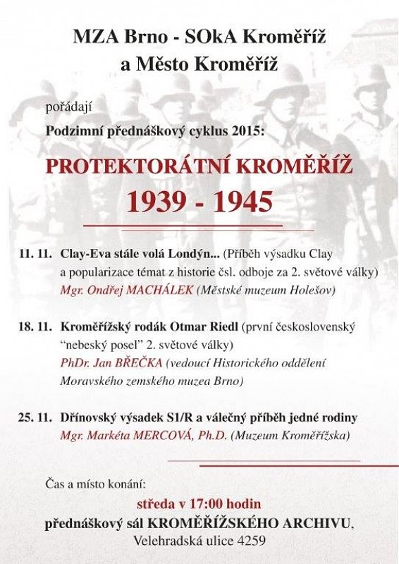 Přednáška se koná v rámci podzimního cyklu odborných přednášek "Protektorátní Kroměříž 1939-1945", jež pořádá MZA Brno - SOkA Kroměříž a Město Kroměříž.