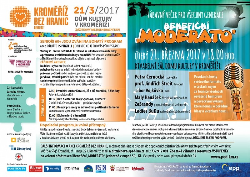 Mezigenerační den pořádaný pod názvem Kroměříž bez hranic přinese celodenní program pro seniory ve věku 60+, školní děti a mládež i širokou veřejnost.
