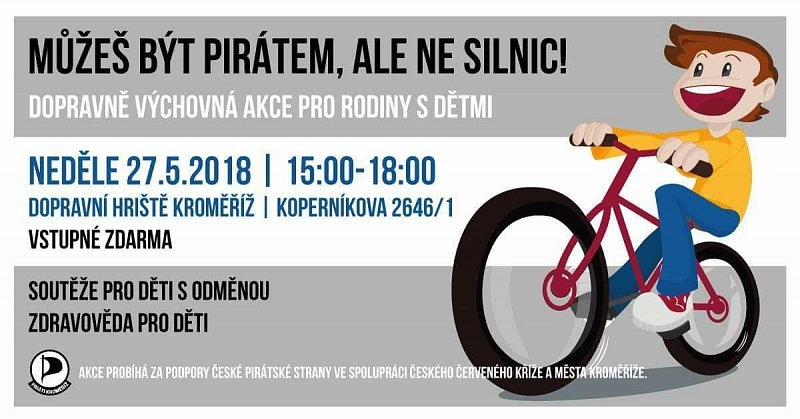 Od 15:00 můžete přijít na dopravní hřiště v Kroměříži na Koperníkové ulici. Malí i velcí piráti silnic se dozvědí něco z dopravní výchovy a první pomoci, čekají na vás také kreativní dílny a odpoledne plné zábavy. Tak si nabalte do batůžku větší svačinu, své kolo nebo kolobku a procházku po městě si protáhněte až za námi na kroměřížské dopravní hřiště