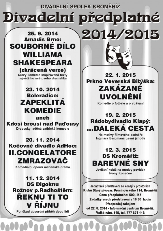 Již tradičně Divadelní spolek Kroměříž pořádá Divadelní předplatné 2014/15. Představení s názvem ... daleká cesta sehraje Rádobydivadlo Klapý.