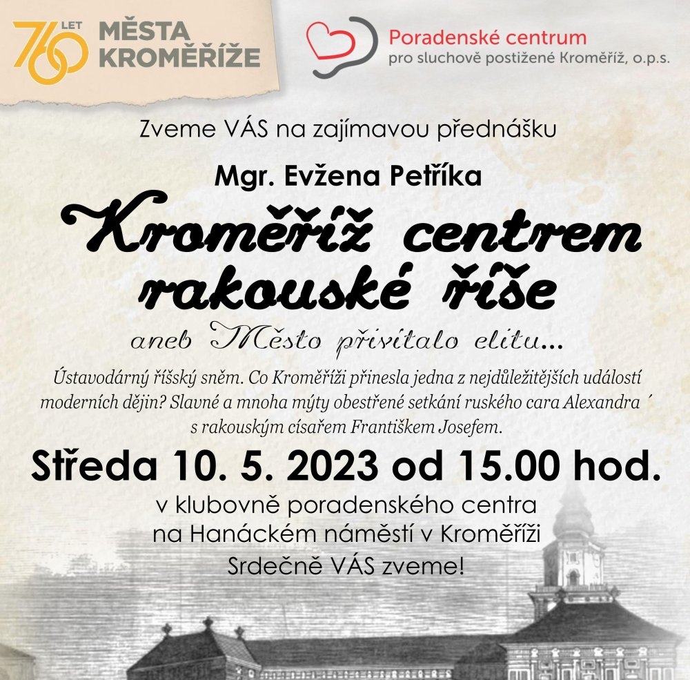 Jaký dopad na Kroměříž měla doba husitská a protireformní? Třicetiletá válka a zničení města Švédy. Poválečný rozmach. Kdo byl Karel z Lichtensteinu-Castelcorna? Sérii přednášek k 760. výročí města Kroměříže pořádá Poradenské centrum pro sluchově postižené Kroměříž pro širokou veřejnost, simultánní přepis mluveného slova a tlumočení do znakového jazyka zajištěno.
