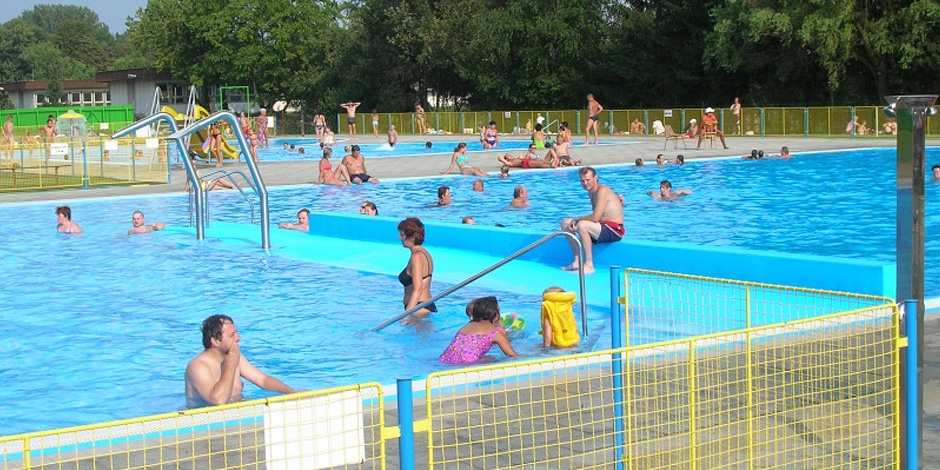 Areál s bazény a tobogánem, vířivkou a dalšími vodními atrakcemi.